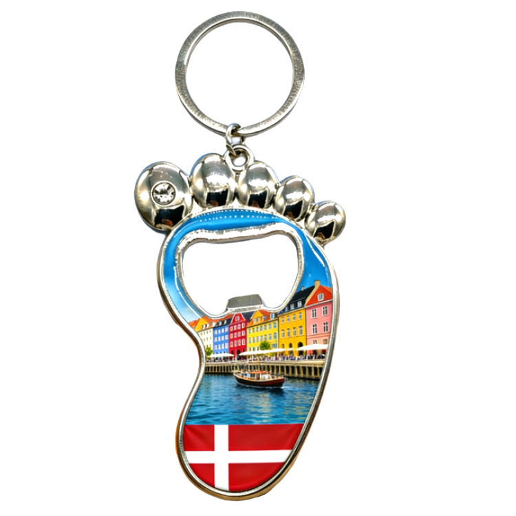 Factory Customized Logo Design Alloy Metal Bottle Opener Keyring Copenhagen Denmark Souvenir Keychain